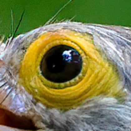 The eye belongs to a lineated barbet . Photo credit: Mahmudul Bari— Wikimedia Commons.